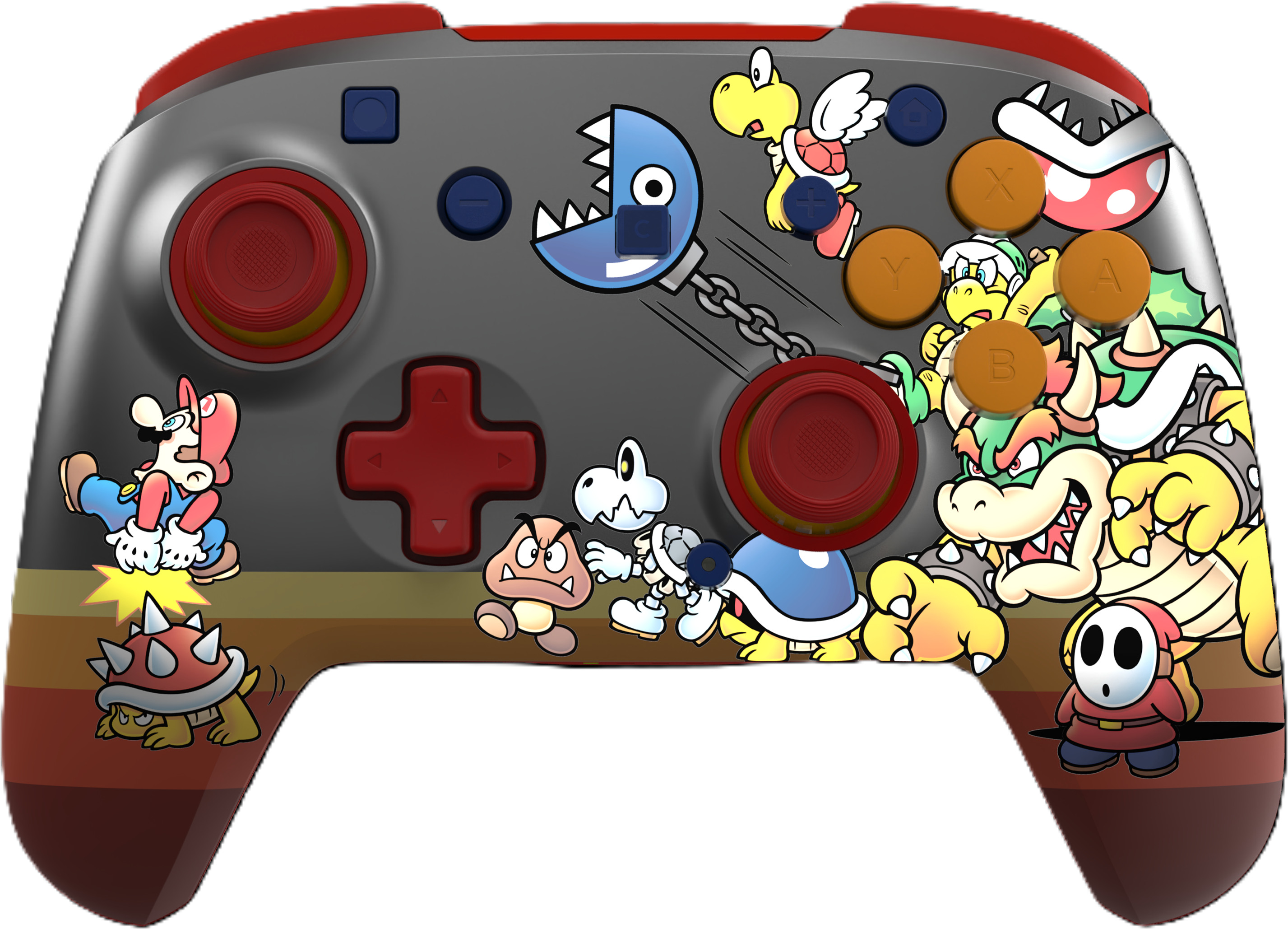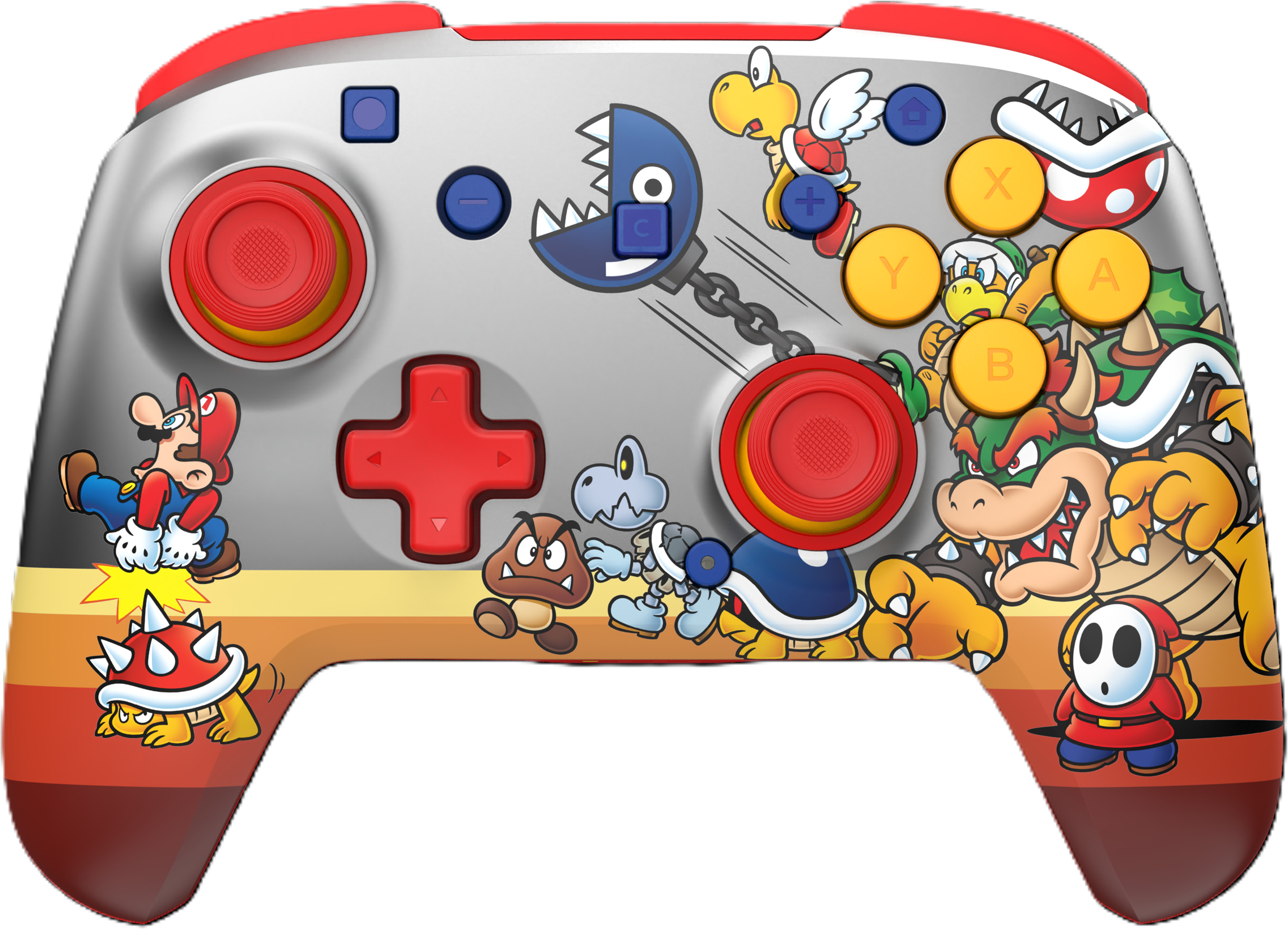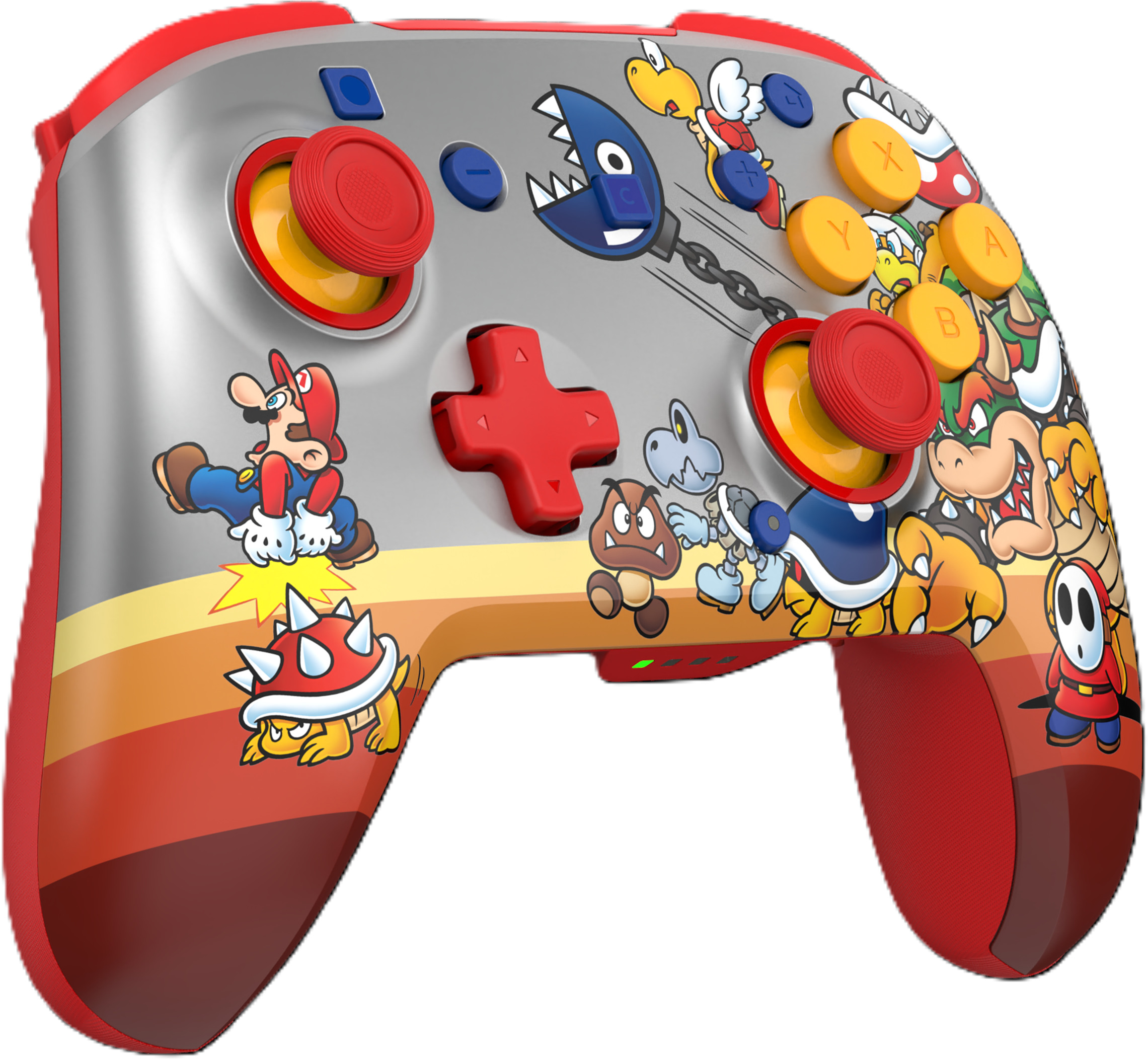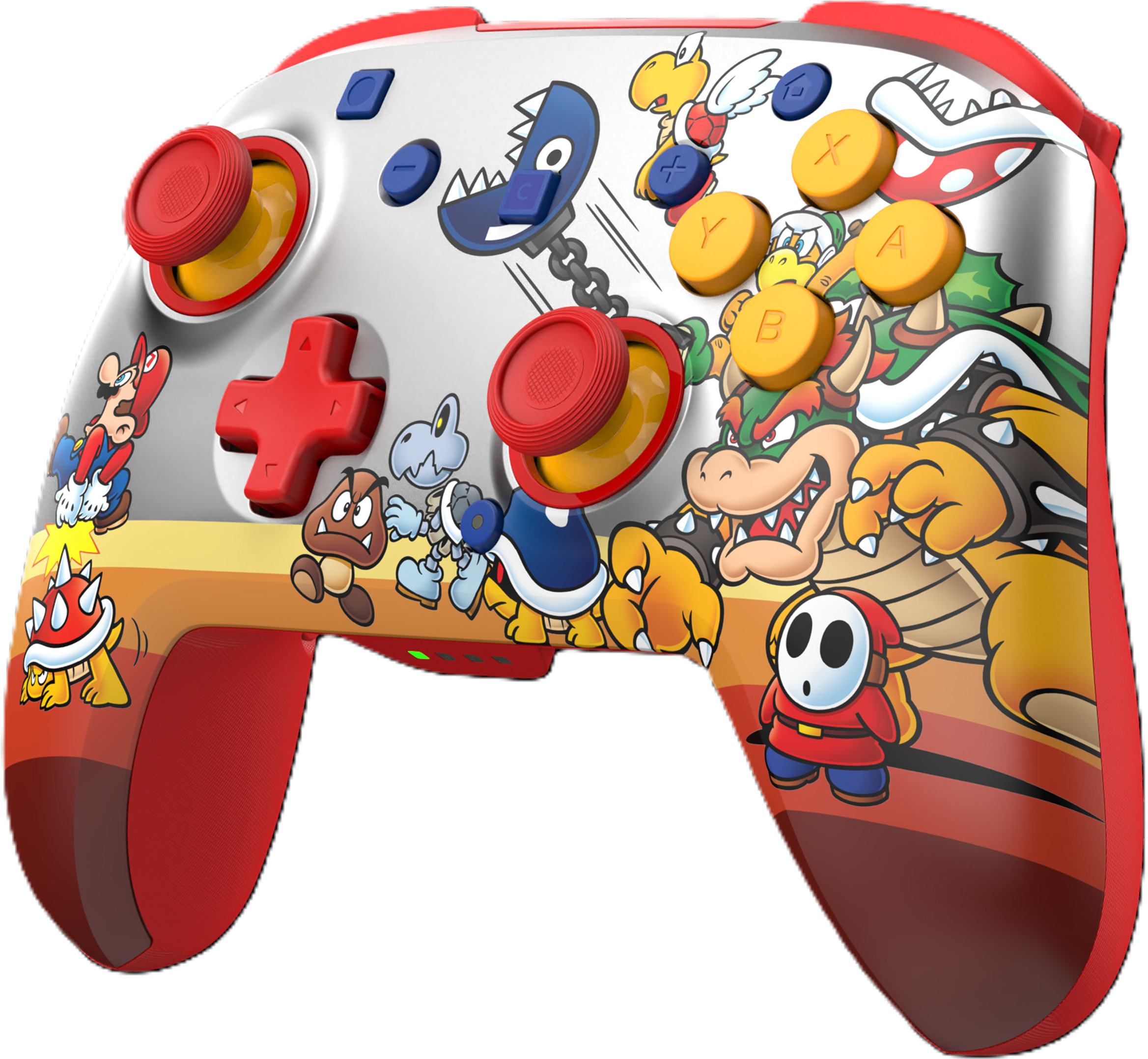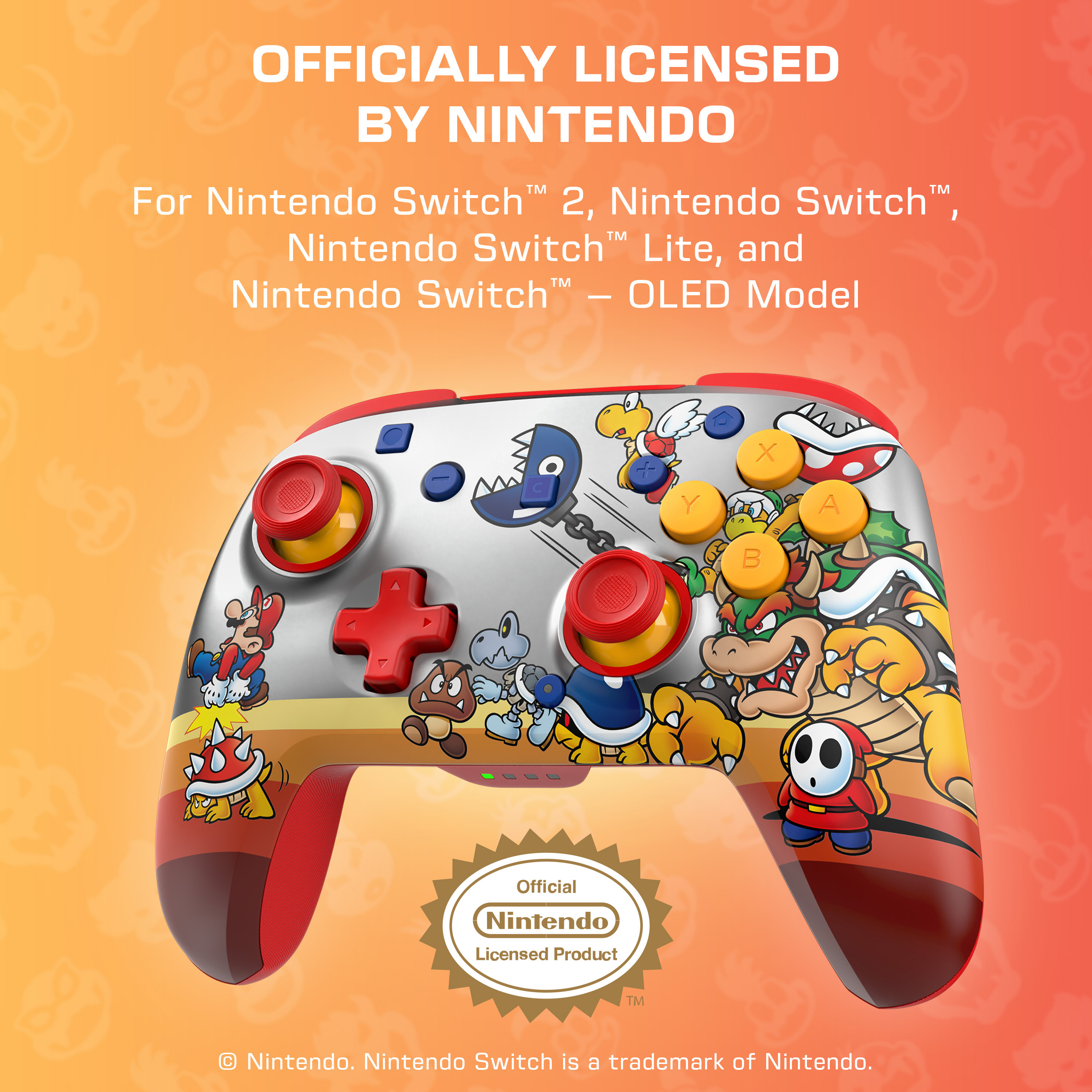 Rejoins les Baddies de Bowser et domine tes rivaux avec la manette de jeu sans fil Rematch™ RGB (Koopa Troop), officiellement approuvée pour la Nintendo Switch™ 2, la Nintendo Switch™, la Nintendo Switch™ Lite et le modèle Nintendo Switch™ - OLED. Avec quatre modes RVB sympas et les célèbres designs de Super Mario™, cette manette garantit une expérience de jeu vraiment intense. Elle est dotée de commandes de mouvement intégrées, de sticks de frappe TMR de haute qualité pour plus de précision et de deux boutons arrière programmables pour des réactions plus rapides. Reste connecté avec une portée allant jusqu'à 9 mètres et joue plus longtemps avec une batterie qui offre jusqu'à 40 heures par charge sans éclairage RVB ou jusqu'à 12 heures avec des effets RVB lumineux. La manette Rematch™ est dotée de fonctionnalités de premier ordre, de possibilités de personnalisation, d'effets RVB sympas et d'une forme ergonomique. Elle te permet d'atteindre un tout nouveau niveau en termes de style, de précision et de plaisir de jeu.