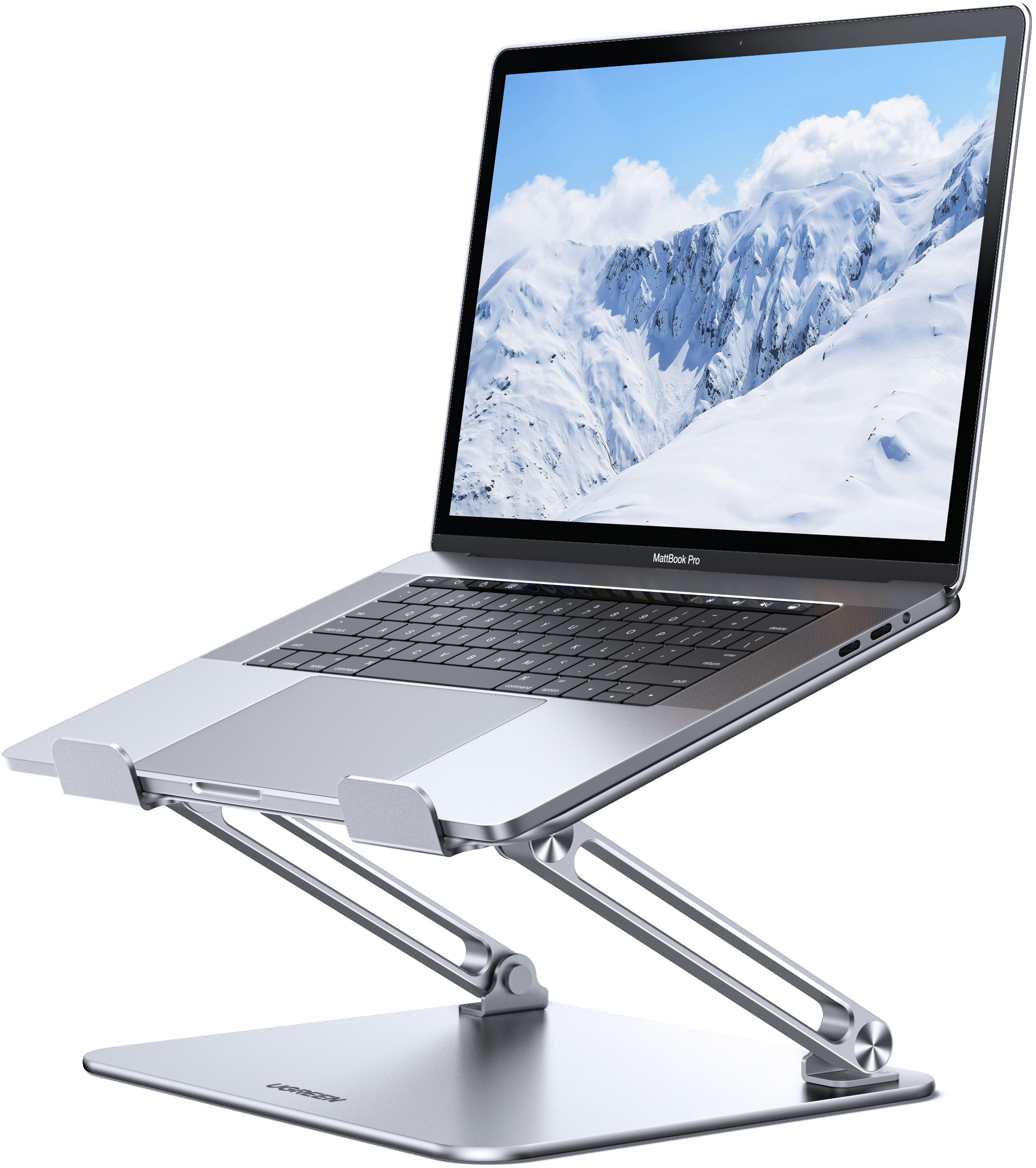 Support pour ordinateur portable UGREEN pour le bureau avec pied en aluminium pivotant à 360°, réglable, compatible avec MacBook Pro et Air, support ergonomique pour ordinateur portable jusqu'à 17,3 pouces, argent.