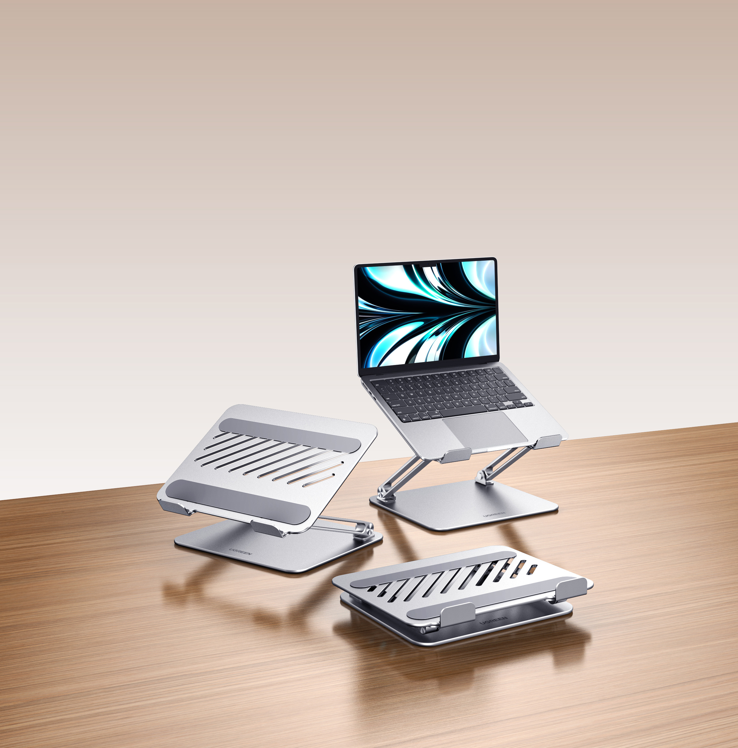 - Option d'affichage à 360° : le support d'ordinateur portable UGREEN pour le bureau dispose d'un pied pivotant à 360°. Vous pouvez ainsi adapter à volonté l'orientation de l'écran de votre ordinateur portable. Idéal pour montrer votre travail à des collègues ou pour partager votre écran - il suffit de tourner le pied. Parfait pour la collaboration ou pour partager avec des amis.