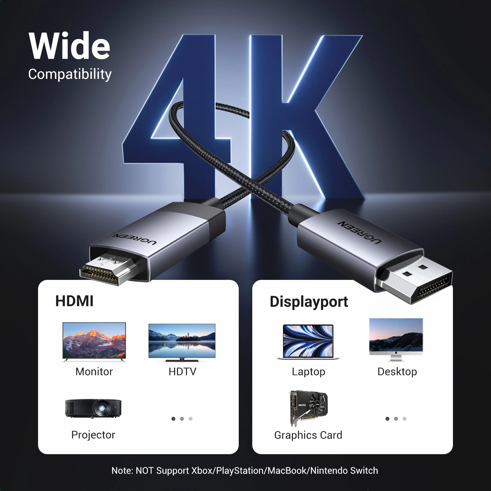 Le câble UGREEN DP119 DisplayPort vers HDMI offre une résolution 4K ultra-nette à 60 Hz et permet une connexion transparente entre votre appareil compatible DisplayPort et un écran HDMI. Grâce à ses conducteurs en cuivre étamé de haute qualité et à ses connecteurs nickelés, ce câble garantit une transmission stable du signal pour des images fluides et une expérience visuelle immersive.