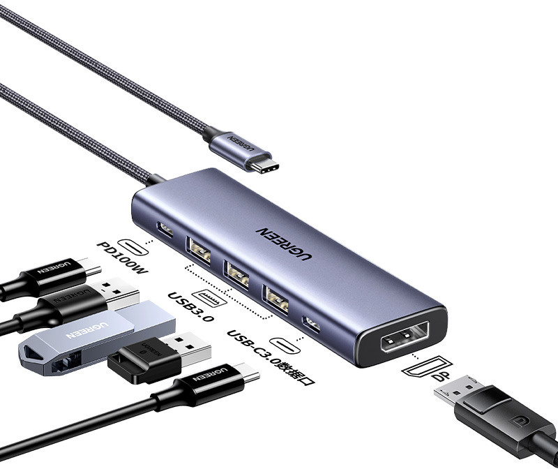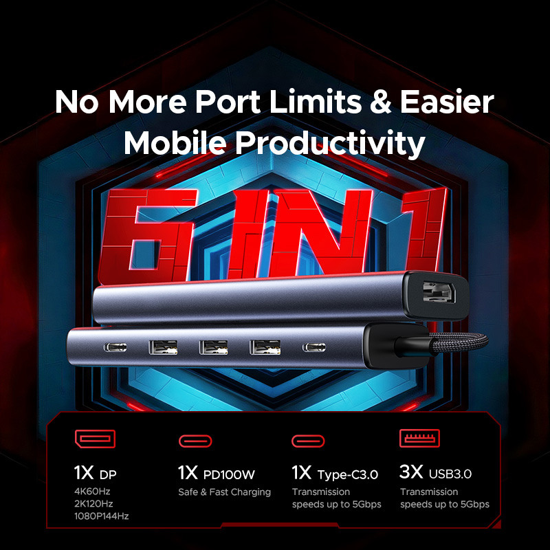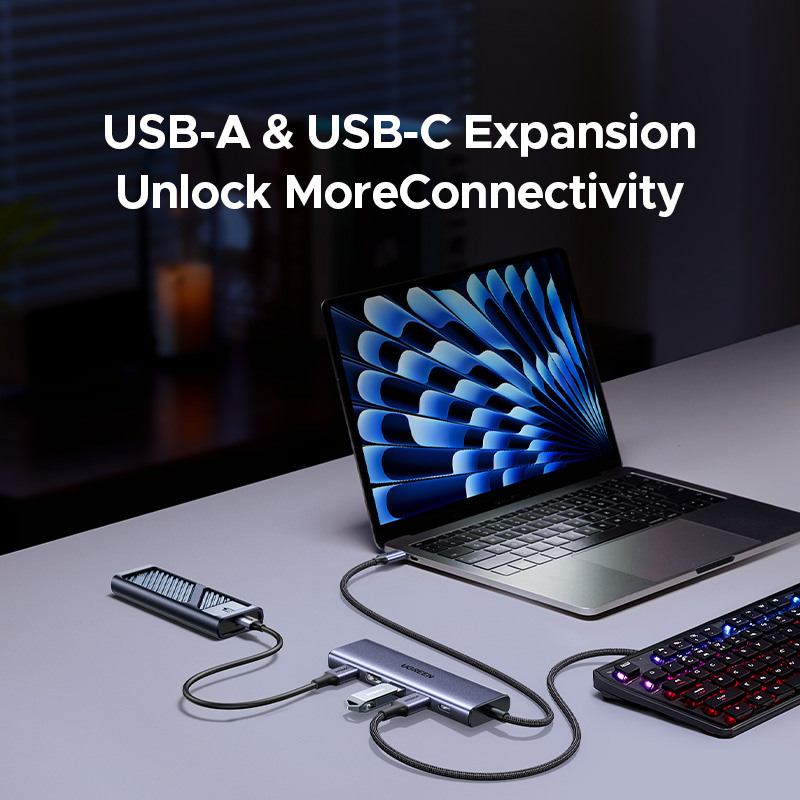 Une productivité maximale sans limitation de ports. Le hub UGREEN 6-en-1 est la solution parfaite pour tous ceux qui souhaitent rester productifs en déplacement. Avec une combinaison de trois ports USB-A 3.0 et d'un port USB-C 3.0, ce hub offre une multitude de possibilités de connexion pour que vous puissiez facilement connecter vos appareils.