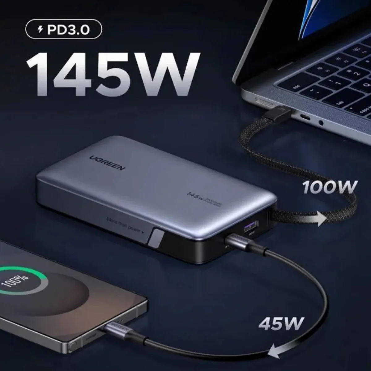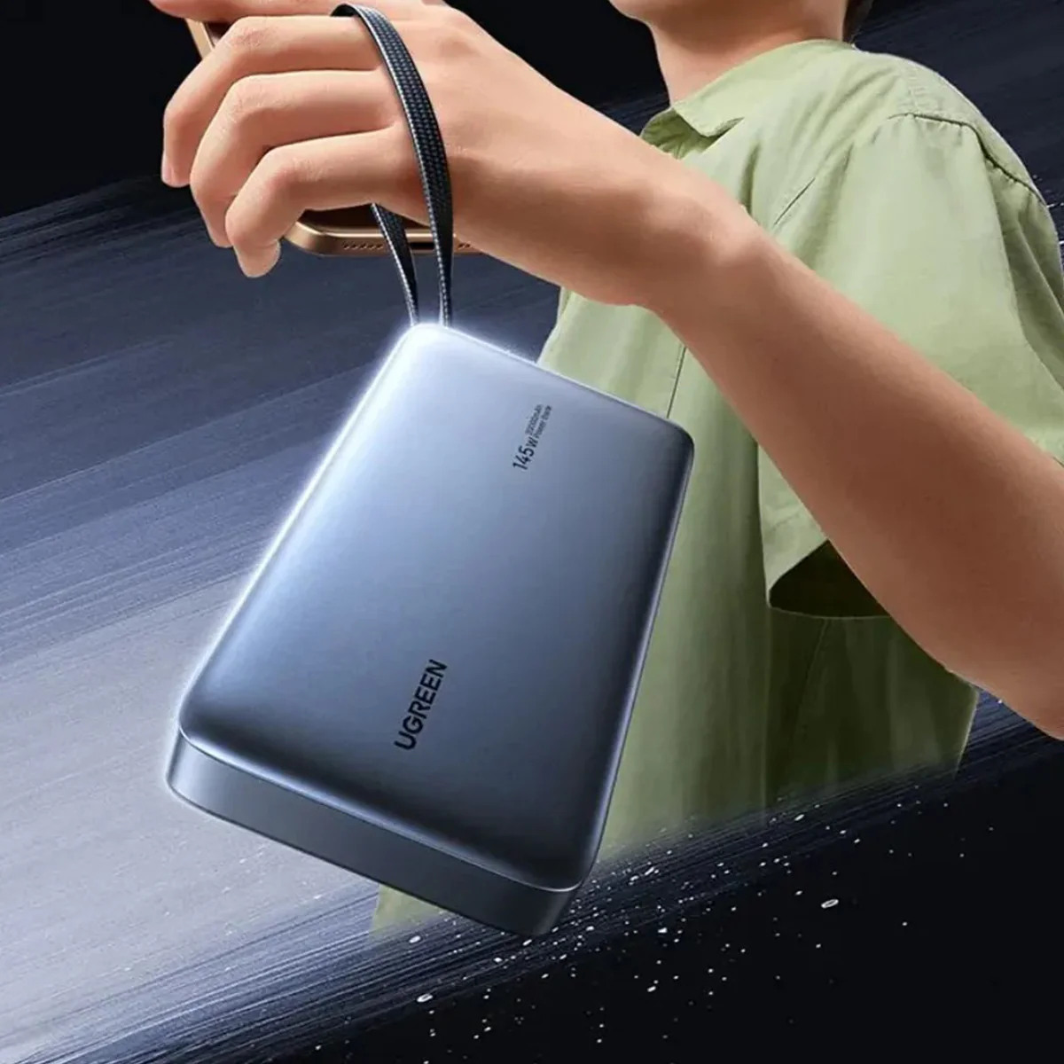 Voyage facile & charge 3 appareils simultanément : sangle de transport avec câble USB-C intégré, supporte les ordinateurs portables, les tablettes, les iPhones, charge 3 appareils simultanément.
