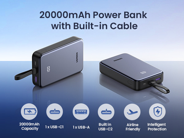 Le powerbank UGREEN 45762 est le choix idéal pour tous ceux qui ont besoin d'une solution de recharge fiable, puissante et rapide. Grâce à son câble intégré et à son design compact, il est particulièrement pratique pour les voyageurs.