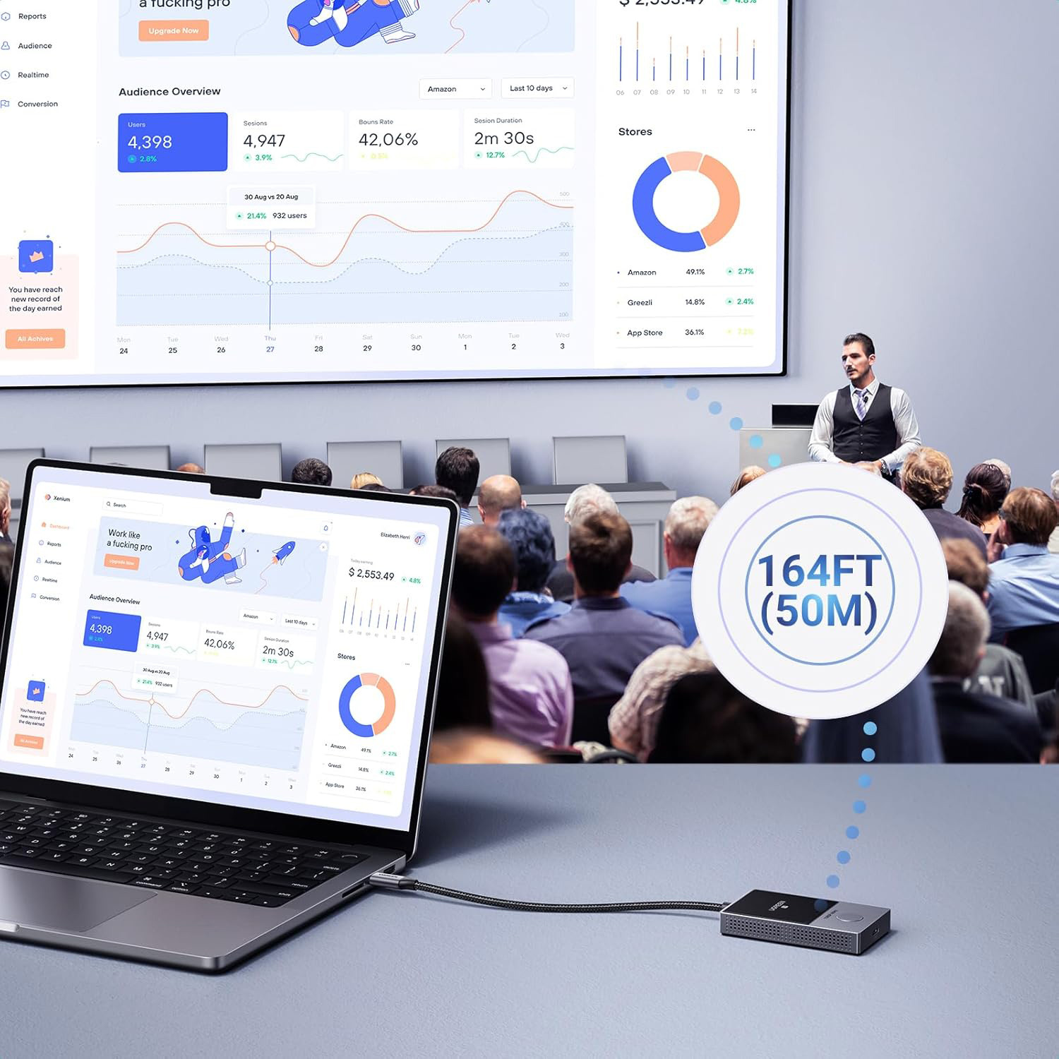 - Transmission vidéo sans fil jusqu'à 50 m avec une faible latence : l'émetteur et le récepteur sans fil UGREEN utilisent le WLAN 5,8 GHz pour une sortie vidéo plus fluide et plus stable. La portée maximale est de 50 m (sans obstacles) - idéal pour les grandes conférences et l'enseignement dans les salles de classe.