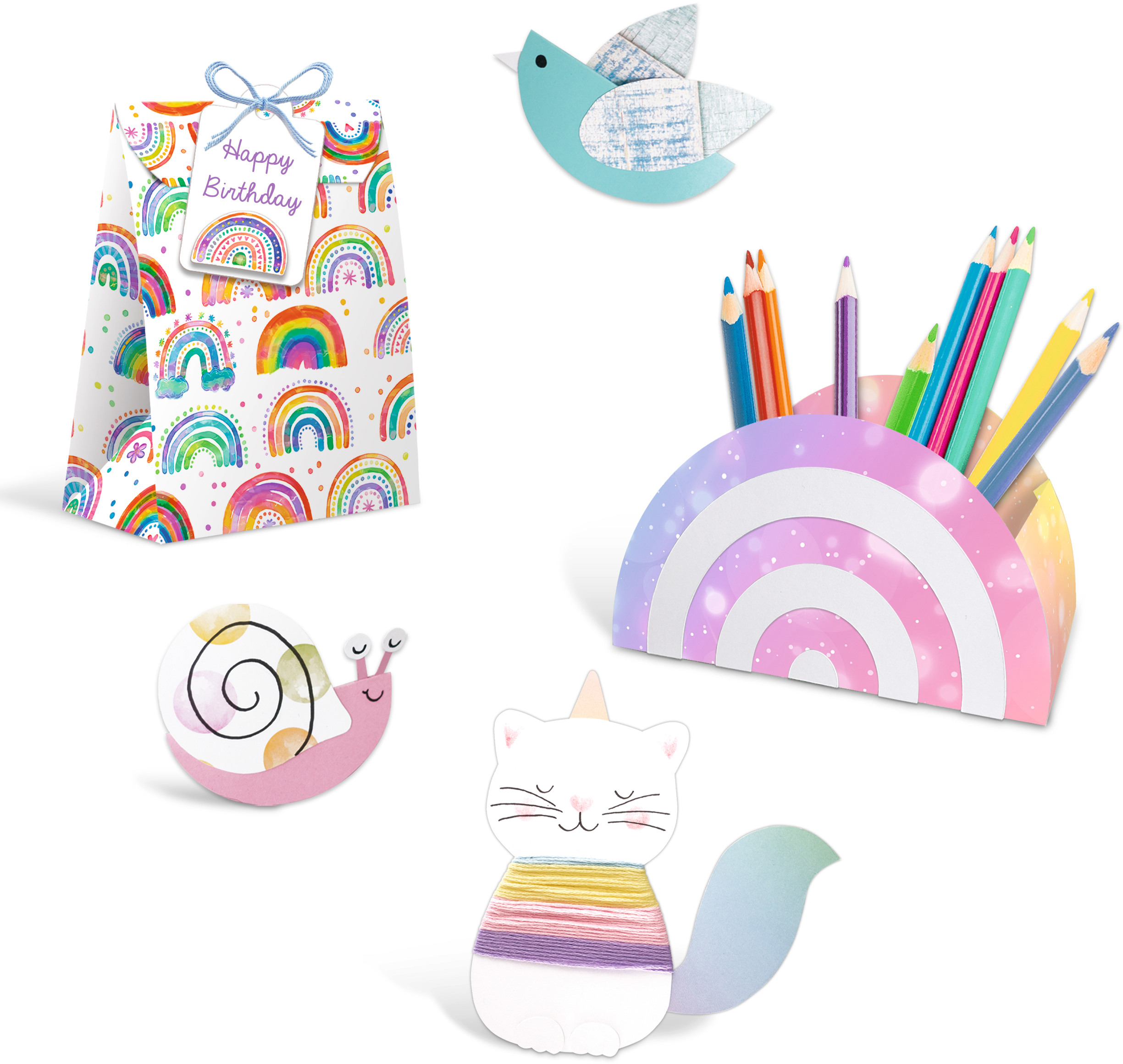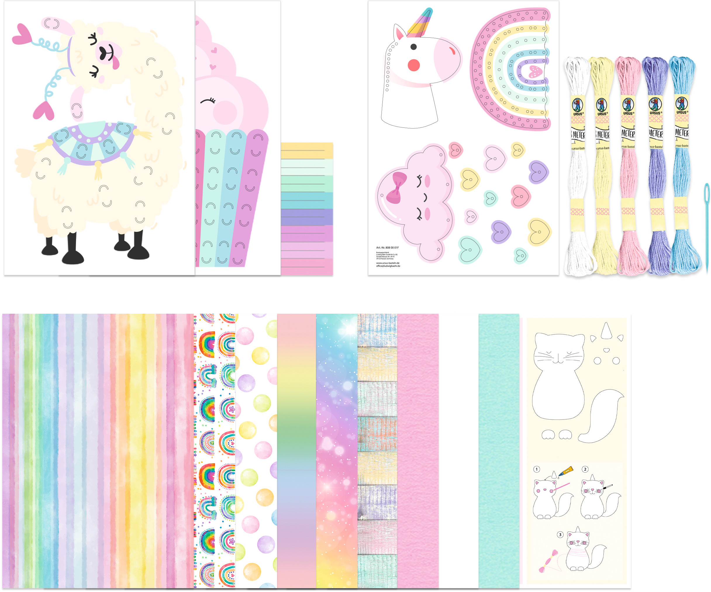 Set de bricolage en papier Cute Rainbow. Le set contient des matériaux pour des idées de bricolage créatives, y compris une feuille de patrons et des instructions de bricolage. <br><br>