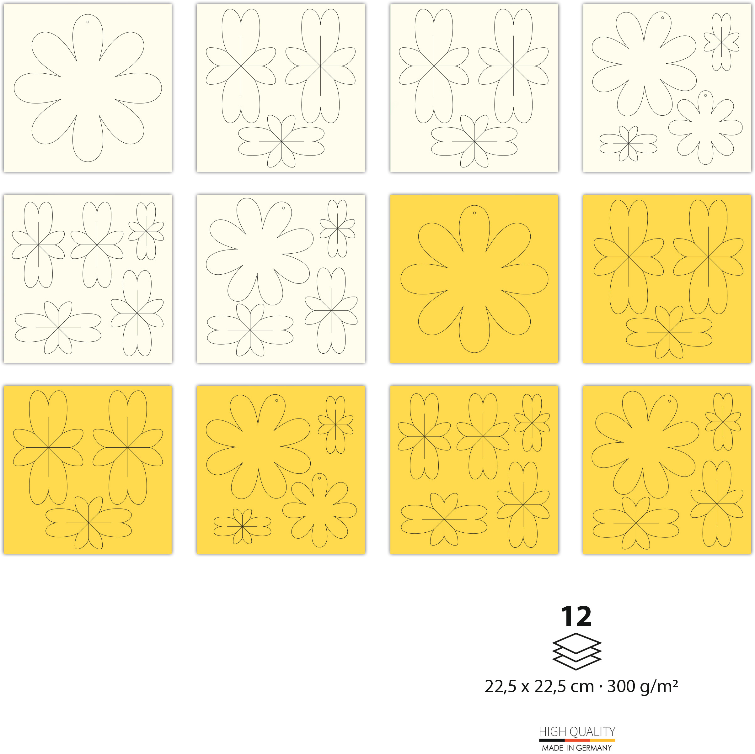 12 feuilles de carton photo , découpé au laser et rainuré en 300 gr. pour 8 fleurs