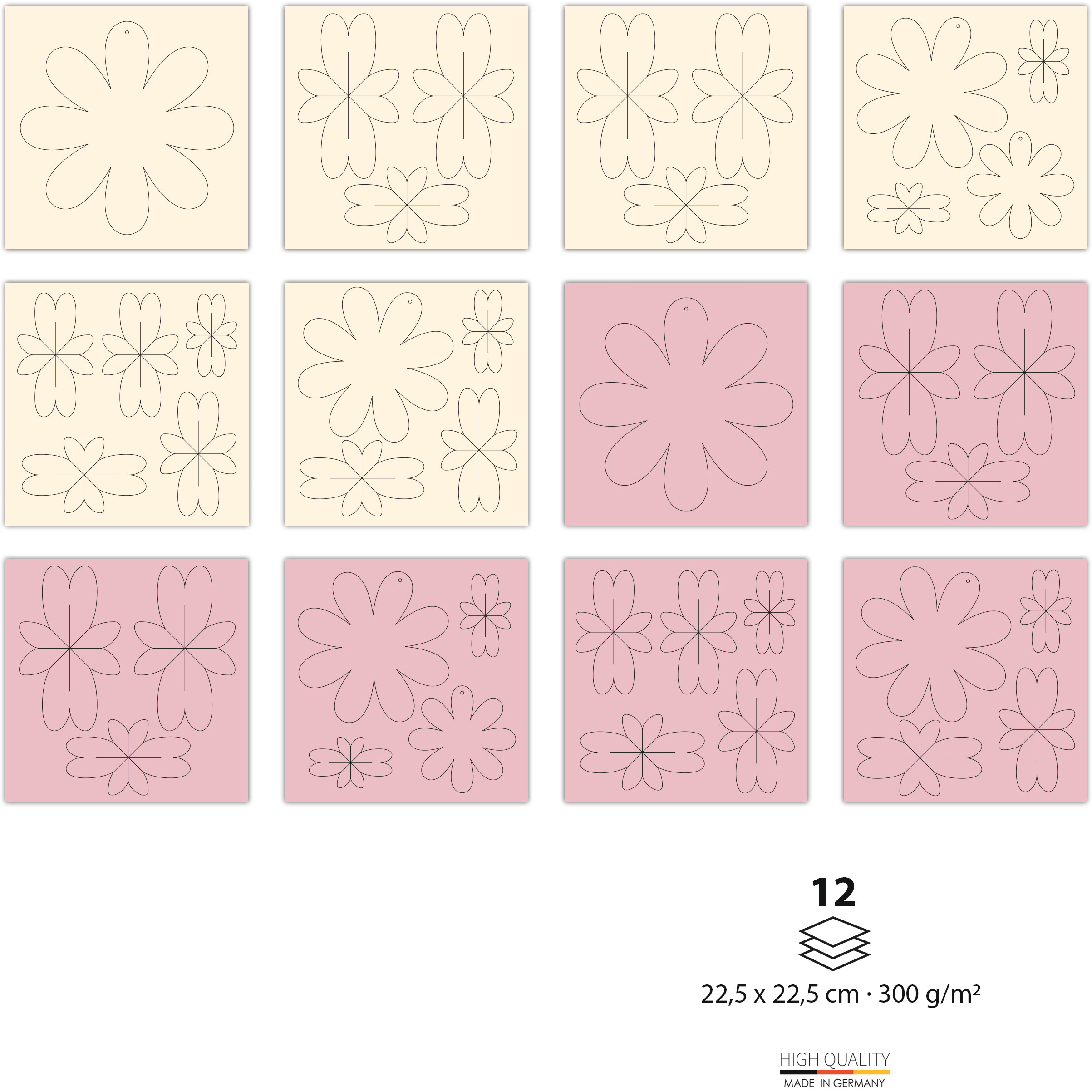 12 feuilles de carton photo , découpé au laser et rainuré en 300 gr. pour 8 fleurs
